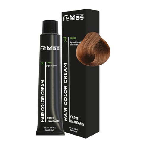 FemMas teinture pour cheveux Blond moyen Ambre Or 7.83 I Crème professionnelle à l'huile d'argan, kératine et céramides I Coloration permanente ou teinture pour des résultats durables I 100 ml