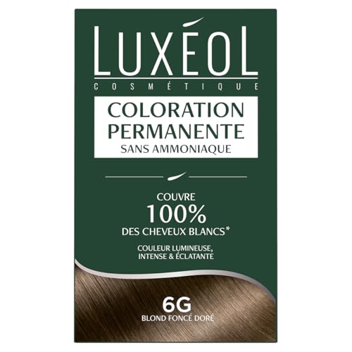 Luxéol - Coloration Permanente 6G Blond Foncé Doré - Sans Ammoniaque - Couvre 100% des Cheveux Blancs(1) - Longue Durée(2) - Couleur Lumineuse Éclatante Intense - Testée & Approuvée - 60ml, 60ml, 12ml