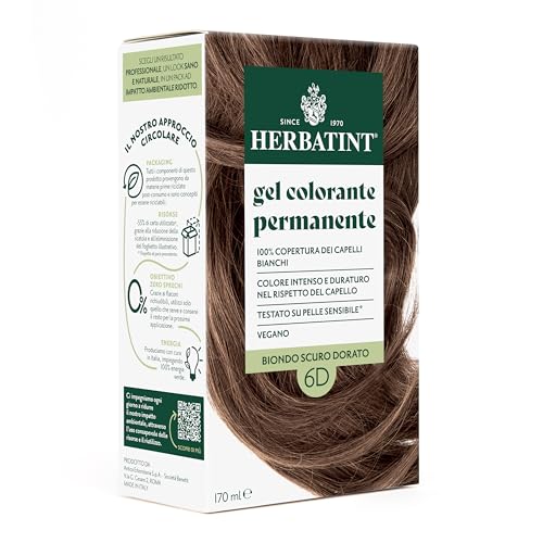 Herbatint Coloration permanente 6D Blond foncé blond doré – 170 ml | Sans ammoniaque | Couverture 100% pour cheveux blancs | Pour peaux sensibles | Avec 8 extraits naturels bio