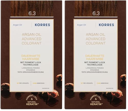 KORRES Coloration Permanente aux Extraits Végétaux Couvre 100% des Cheveux Blancs sans Ammoniaque/PPD 6.3 Blond Miel Doré (Lot de 2)