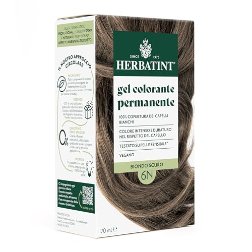 Herbatint Coloration permanente pour cheveux - 6N blond foncé - 170 ml - Sans ammoniaque - Couverture 100% pour cheveux blancs - Pour peaux sensibles - Avec 8 extraits naturels bio