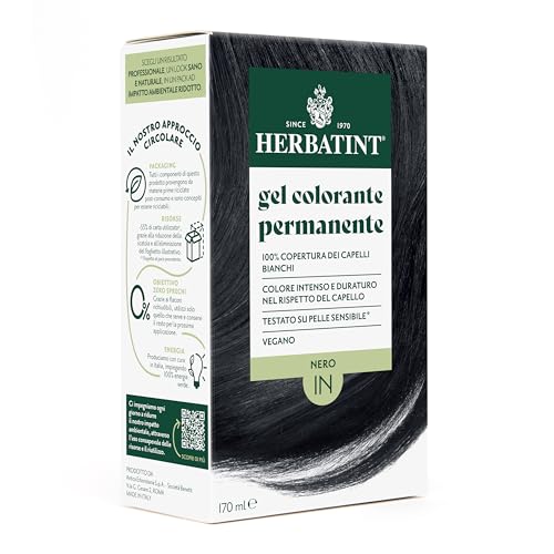 Herbatint Coloration permanente pour cheveux blancs 1N noir – 170 ml | Sans ammoniaque | Couverture 100% pour cheveux blancs | Pour peaux sensibles | Avec 8 extraits naturels biologiques
