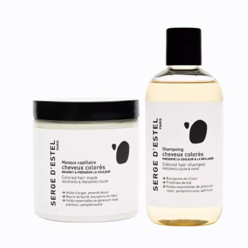 SERGE D'ESTEL PARIS - Soin Cheveux Colorés 500ml Shampoing et Masque Cheveux Colorés Nourrit Hydrate les Cheveux Protège & Prolonge la Coloration Végétale Soins Naturels 100% Vegan Made in France