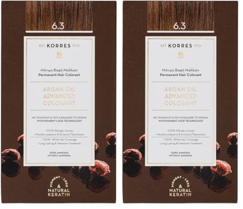 KORRES Coloration Permanente aux Extraits Végétaux Couvre 100% des Cheveux Blancs sans Ammoniaque/PPD 6.3 Blond Miel Doré (Lot de 2)