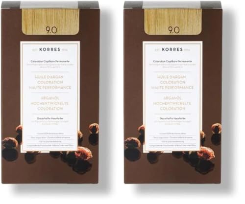 KORRES Coloration Permanente aux Extraits Végétaux Couvre 100% des Cheveux Blancs sans Ammoniaque/PPD 9 Blond Très Clair 9.0 (Lot de 2)