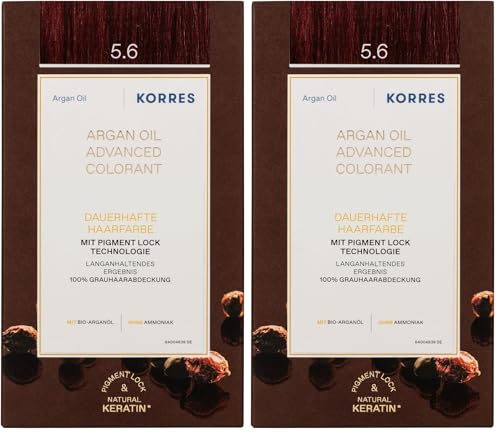 KORRES Coloration Permanente aux Extraits Végétaux Couvre 100% des Cheveux Blanc sans Ammoniaque/PPD, 5.6 Châtain Clair Magenta (Lot de 2)