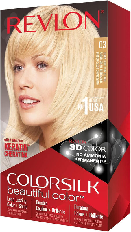 Revlon Colorsilk Beautiful Color Coloration Permanente des Cheveux avec Technologie au Gel 3D et Kératine, Teinture avec Couvrance à 100% des Cheveux Blancs, 03 Blond Soleil Ultra Clair (Lot de 2)