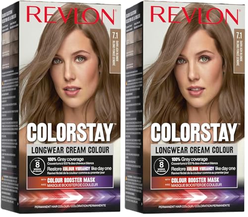Revlon ColorStay - Coloration Permanente - Coloration Cheveux Longue Tenue - Couvre 100% des cheveux blancs - Jusqu’à 8 semaines - Huile de Macadamia et de Beurre de Murumuru - N7.1 Blond Foncé Cendré