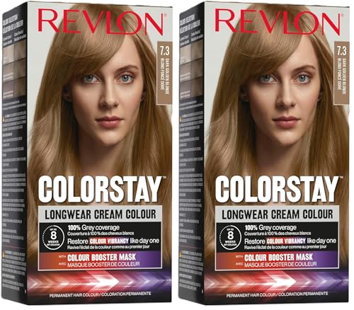 Revlon ColorStay - Coloration Permanente - Coloration Cheveux Longue Tenue - Couvre 100% des cheveux blancs - Jusqu’à 8 semaines - Huile de Macadamia et de Beurre de Murumuru - N7.3 Blond Foncé Doré