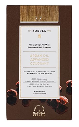 Korres Coloration Permanente aux Extraits Végétaux - Couvre 100% des Cheveux Blancs - Sans Ammoniaque, Sans PPD - 7.7 Blond Marron