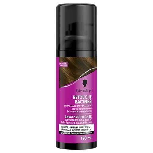 Schwarzkopf - Retouche Racines Cheveux Blancs - Spray Masquant Temporaire Racines Cheveux - S’efface au premier shampooing - Châtain foncé, 120 ml (Lot de 1)