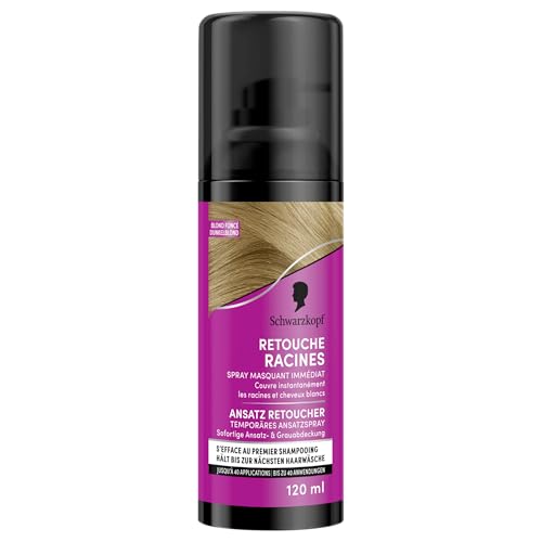 Schwarzkopf - Retouche Racines Cheveux Blancs - Spray Masquant Temporaire Racines Cheveux - S’efface au premier shampooing - Blond Foncé, 120 ml (Lot de 1)
