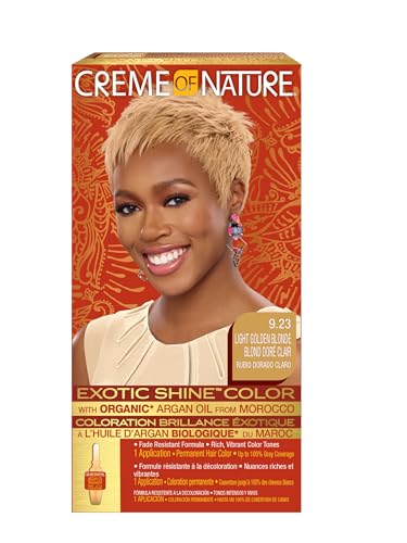 Creme of Nature, Argan Oil, Coloration Permanente Longue-Tenue à l'Huile d'Argan du Maroc, Coloration Cheveux Bouclés à Crépus, Couvre 100% des Cheveux Blancs, Teinture Cheveux 9.23 Blond clair doré