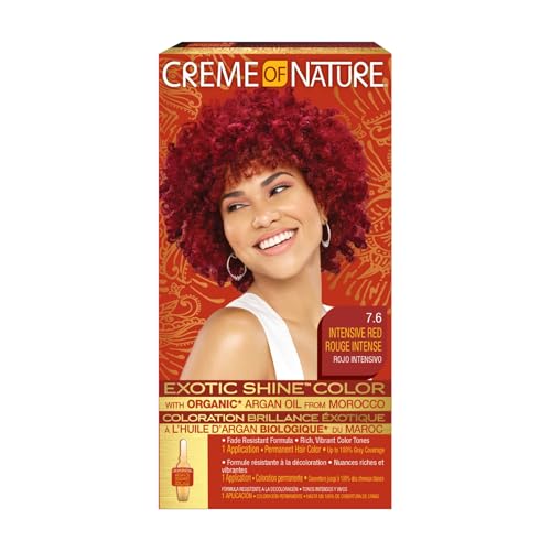 Creme of Nature - Argan Oil - Coloration Permanente à l'Huile d'Argan du Maroc - Coloration Cheveux Bouclés à Crépus - Couvre 100% des Cheveux Blancs - Teinture Cheveux N 7.6 Rouge Intense