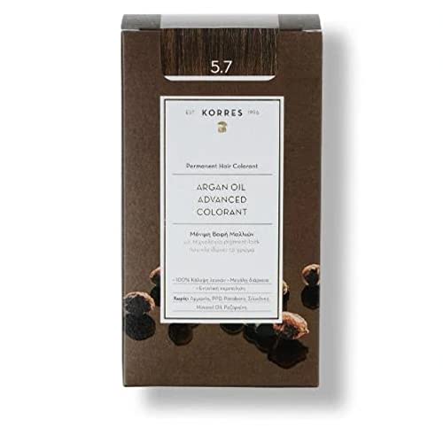 KORRES - KORRES - Coloration Permanente aux Extraits Végétaux - Couvre 100% des Cheveux Blancs - Sans Ammoniaque, Sans PPD - 5.7 Chocolat