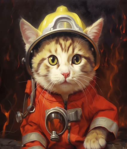 Ccfqiangtie Peinture à l'huile de Bricolage sur Toile pour Adultes et Enfants,Animaux créatifs,chats de compagnie pompier,Coloriage Par Numéro,Kit Cadeau de Peinture à l'huile,40x50cm