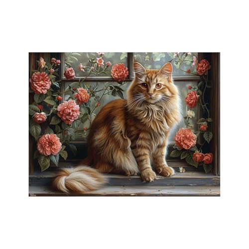 Chat Peinture Numero Adulte, DIY Fleur Peinture Numero Adulte 40x50cm, Pinceaux et Acryliques, Kits de Coloriage par Numbers pour Adultes Débutants, Décoration Murale et Cadeaux, (Sans Cadre), -7489