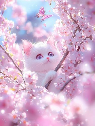 Peinture Numero Adulte Chat, Peinture par Numéro Papillon Enfan Débutants, Kits Creatif de Peinture au Numéro Coloriage par Numero, DIY Peinture Numéro Cadeaux Décor Intérieure Sans Cadre 30x40cm D-1