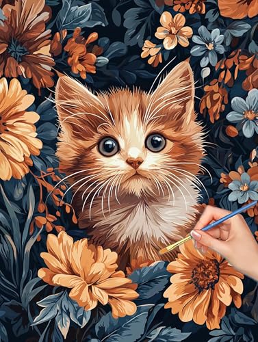 Chat Peinture Numero Adulte, DIY Fleurs Peinture Numero Adulte 40x50cm, Pinceaux et Acryliques, Kits de Coloriage par Numbers pour Adultes Débutants, Décoration Murale et Cadeaux, (Sans Cadre), -7051