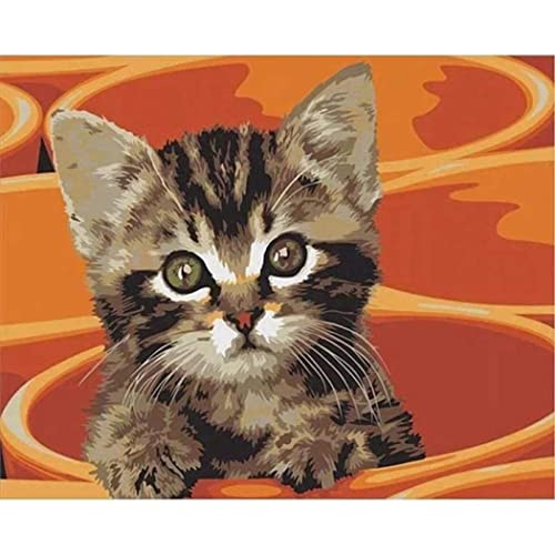 Chat Peinture Numero Adulte, DIY Animal Peinture Numero Adulte 40x50cm, Pinceaux et Acryliques, Kits de Coloriage par Numbers pour Adultes Débutants, Décoration Murale et Cadeaux, (Sans Cadre), -7517