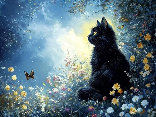 Peinture Numero Adulte Noir Coloriage Par Numero Adulte et Enfant DIY Chat Creatif Toile Paint by Numbers Kits Peinture Numéro d'art Acrylique Manuelle Activité, Décoration de Chambre 50x70cm R0-330