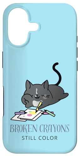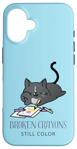 Crayons cassés Still Color Chat Mignon avec Livre de coloriage Coque pour iPhone 16