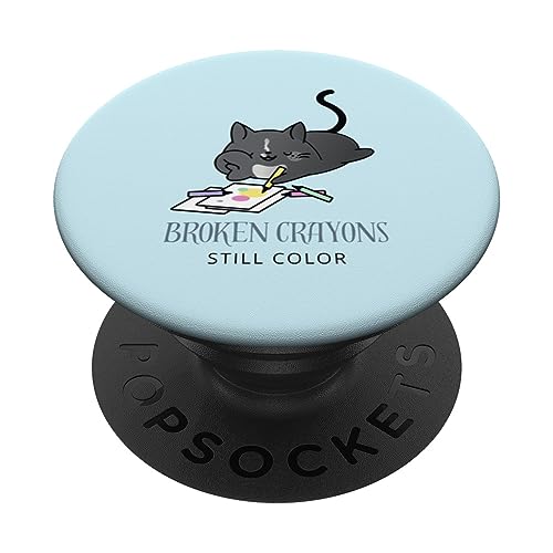 Crayons cassés Still Color Chat Mignon avec Livre de coloriage PopSockets PopGrip Adhésif