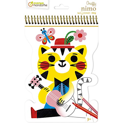 MY MANDARINE GY110C - Un Carnet de coloriage Graffy Nimo - 24 Pages Imprimées à Colorier 160g - À partir de 3 ans - CHAT