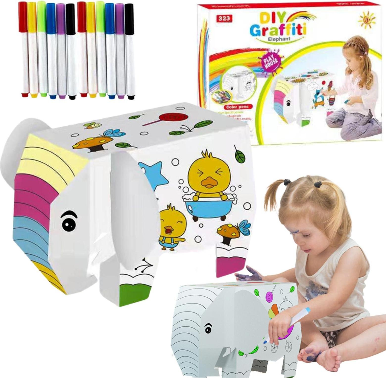 Kit De Dessin D'éléphant En Carton Feutres De Coloriage Pliables