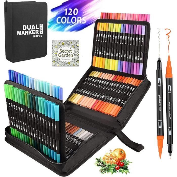 Feutre Coloriage - AZWIX - 120 Couleurs - Double Pointe Fine - Pour Adultes et Enfants - Non Toxique