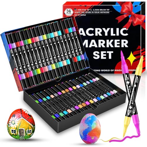 Dictien 36 Couleurs Feutres Acrylique Coloriage Adulte,Feutre Peinture Acrylique, Séchage Rapide & Anti-Taches, Non Toxiques & Sans Odeur, Pour Pierre/Bois/Verre/Tissu | Artistes & Bricoleurs