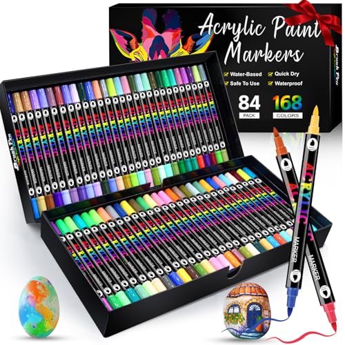 168 Couleurs Feutres Acrylique ColoriageFeutre Peinture Acrylique Séchage Rapide & Anti-Taches Non Toxique &Sans Odeur84 pièces