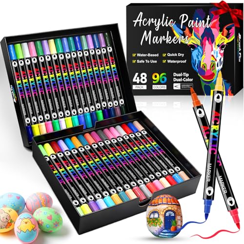 96 Couleurs Feutres Acrylique ColoriageFeutre Peinture Acrylique Séchage Rapide & Anti-Taches Non Toxique &Sans Odeur48 pièces