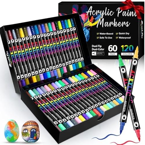 120 Couleurs Feutres Acrylique ColoriageFeutre Peinture Acrylique Séchage Rapide & Anti-Taches Non Toxique &Sans Odeur60 pièces