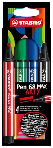 STABILO Pen 68 MAX ARTY - Feutre dessin - Etui carton x 4 Feutres Coloriage Pointe Large