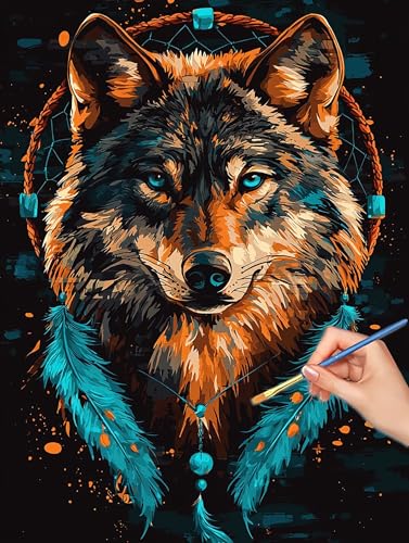 Loup Peinture Numero Adulte, DIY Attrape Reve Peinture Numero Adulte 40x50cm, Pinceaux et Acryliques, Kits de Coloriage par Numbers pour Adultes Débutants, Décoration Murale, Cadeau Femme, -7771