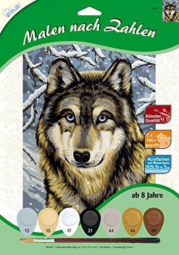 Mammut 105067 – Kit de Peinture par numéros au Motif Animal, Loup, kit Complet avec modèle de coloriage imprimé au Format A4, 7 peintures acryliques et pinceaux, kit de Peinture pour Enfants à partir