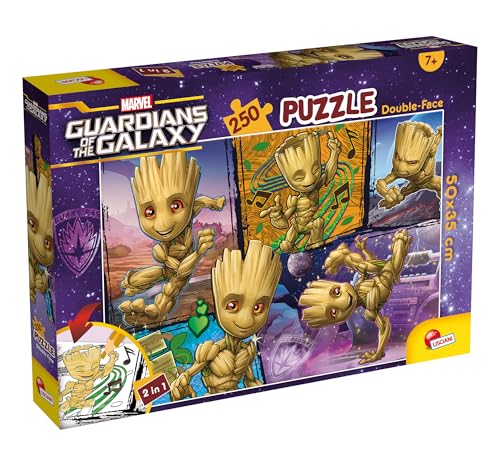 Lisciani - Puzzle Marvel Groot DF Plus - Puzzle 250 Pièces Double Face pour Enfants dès 7 Ans - Format 50x35 cm - Coloriage au Verso - Activité Créative - Ideé Cadeau Garçon et Fille