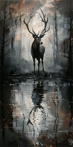 Peinture Numero Adulte cerf,Noir et blanc Peinture par Numero Bébutants,D'art Paint Bynumbers Kits Adulte Toile Coloriage par Numero avec Pinceaux et Acryliques pour Chambre Décoration 40x80cm H-756
