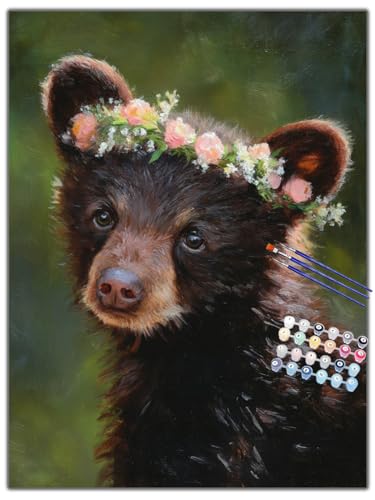 TATQUND Peinture Numero Adulte Ours en couronne de fleurs DIY Peinture Numero Acrylique pour Adultes Coloriage Par Numero la Décoration de la Maison 40x50cm (sans Cadre)