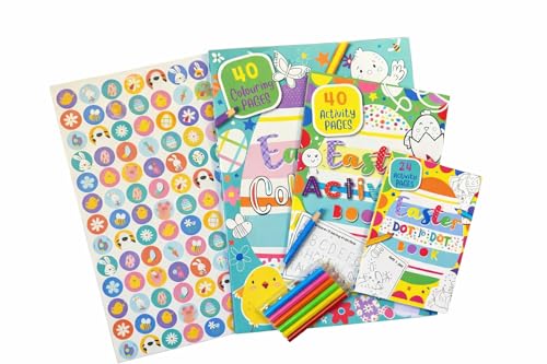 Quickdraw Supplies Ensemble de livres d'activités de Pâques pour enfants – Pages de coloriage, autocollants, puzzles point à pois et crayons – Pack d'artisanat A4 pour enfants pour sacs de fête