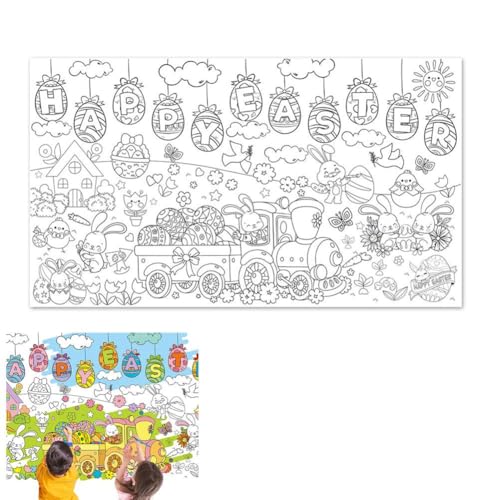 POPOYU Nappe de coloriage géante de Pâques pour Enfants, 137 x 274 cm, Nappe pour Poster de coloriage de Lapin de Pâques, Livres de coloriage, Couverture de Table pour Filles et garçons, Affiche de f