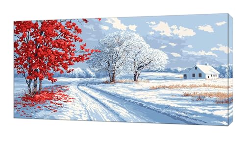 Peinture Numero Adulte, DIY Peinture Numero Arbre Neige, Coloriage Par Numéro Adultes, Paint by Numbers Kit Loisirs Créatifs Adultes, Canevas Peintures Decoration Chambre Murale Cadeau 60x120cm zy-18