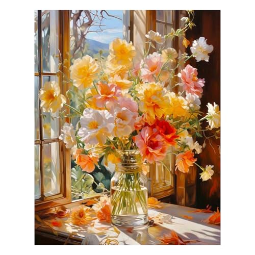 YUNLINZI Peinture par Numéros pour Adulte,Vase d'hiver pour fenêtre Kits de Peinture au Numéro, Coloriage Par Numéro Pour La Décoration De La Maison (40x50 cm),sans cadre