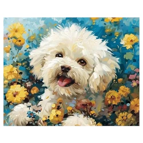 YUNLINZI Peinture par Numéros pour Adulte,mignon petit chien blanc Kits de Peinture au Numéro, Coloriage Par Numéro Pour La Décoration De La Maison (40x50 cm),sans cadre