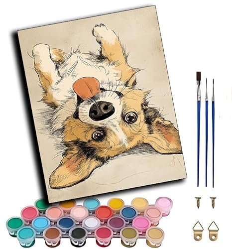 YUNLINZI Peinture par Numéros pour Adulte,Chien mignon et vif Kits de Peinture au Numéro, Coloriage Par Numéro Pour La Décoration De La Maison (40x50 cm),sans cadre