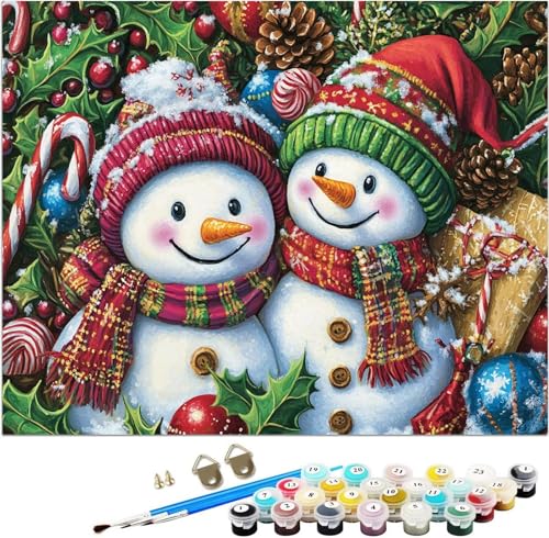 Zdklfm69 Peindre par Nombre Peinture par numéro Kits de Bricolage de noël pour Adulte sur Toile Bonhomme de Neige Peinture Acrylique Dessin coloriage par numéro Decor Art 40x50cm