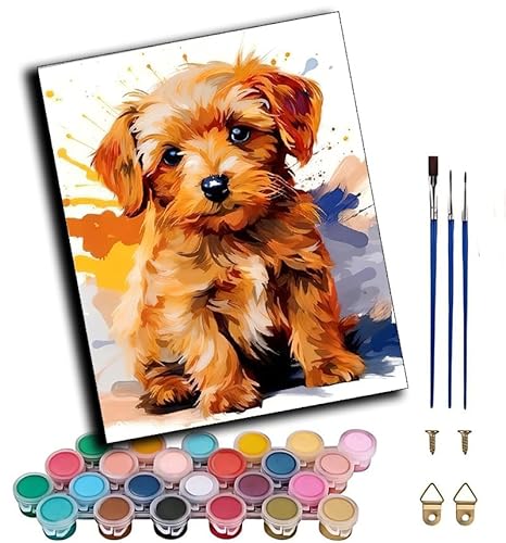 YUNLINZI Peinture par Numéros pour Adulte,Chien mignon Kits de Peinture au Numéro, Coloriage Par Numéro Pour La Décoration De La Maison (40x50 cm),sans cadre