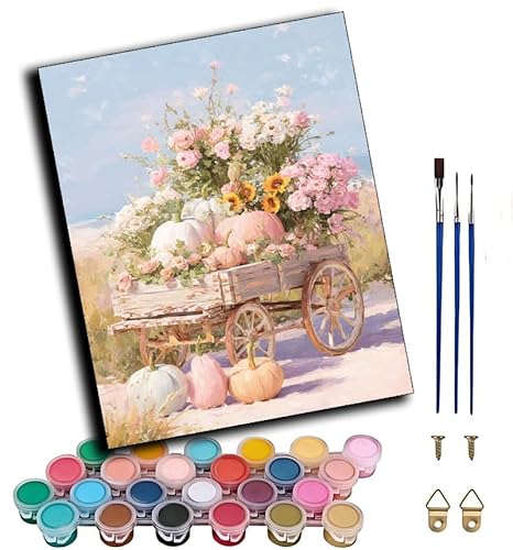 YUNLINZI Peinture par Numéros pour Adulte,Chariot de citrouilles Plage d'automne Kits de Peinture au Numéro, Coloriage Par Numéro Pour La Décoration De La Maison (40x50 cm),sans cadre