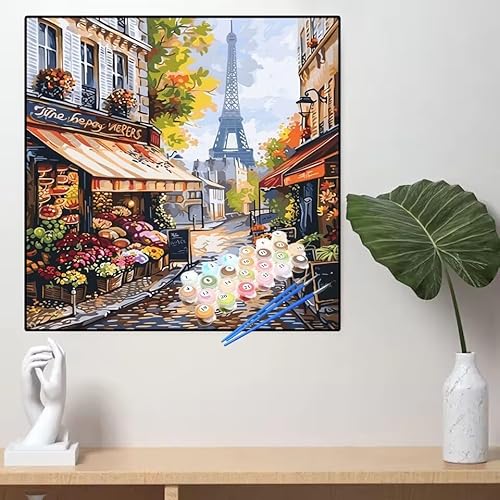 DIY Peinture Numéro Adulte Enfant, WOWDECOR Paris Tour Eiffel Rue Couple Peinture par numero, Paint by Numbers